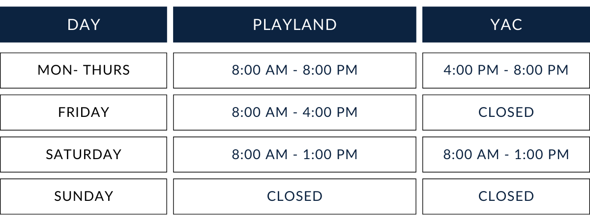 The Youth Activity Center (YAC) is a place for 6-13 year-old children to make friends, play games, and stay active while their parents work out. The YAC room is a large gymnasium space designed with children’s activities in mind. It is located between the Circuit Training Area and Free Weight Floor. Kids will enjoy designated area for activities such as Wii games, basketball, foosball, and many more activities! Our staff members are personable and quickly interact with the children to make their time in YAC room memorable